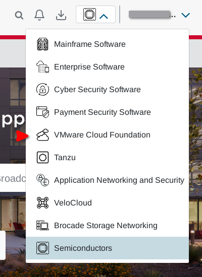 1. 在右上角登陆用户名旁边的按钮下拉菜单选择 VMware Cloud Foundation